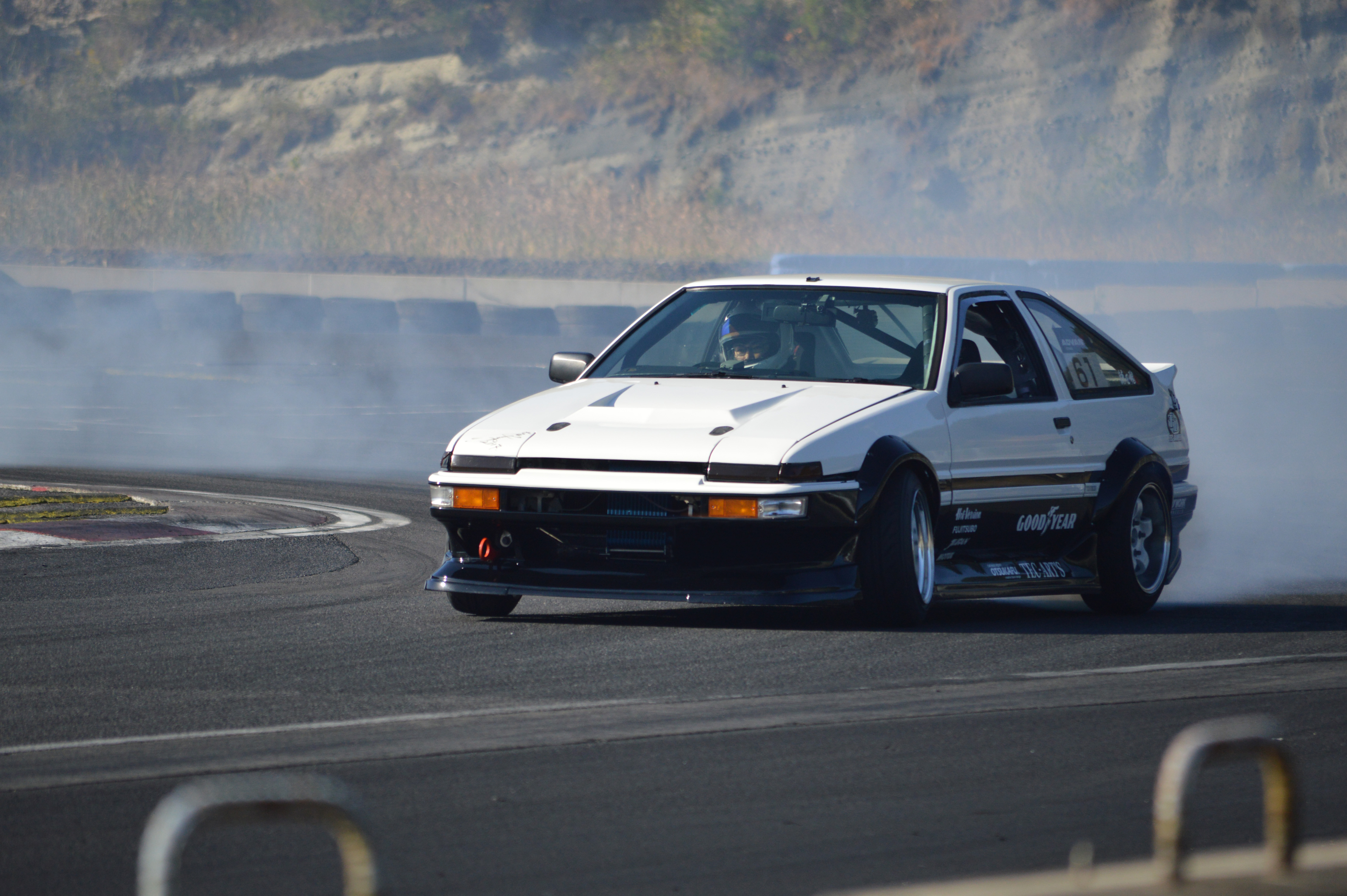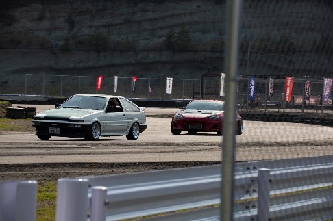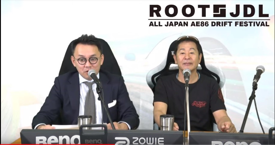 ROOTS CHAMPION FESTIVAL本戦を行う前に土屋圭市氏とTEC-ART’S社長の鎌田芳徳氏がエキシビションマッチとして3先日グランツーリスモスポーツのアップデートで追加されたAE86を乗り、筑波サーキットにて3LAPS対決を行った。