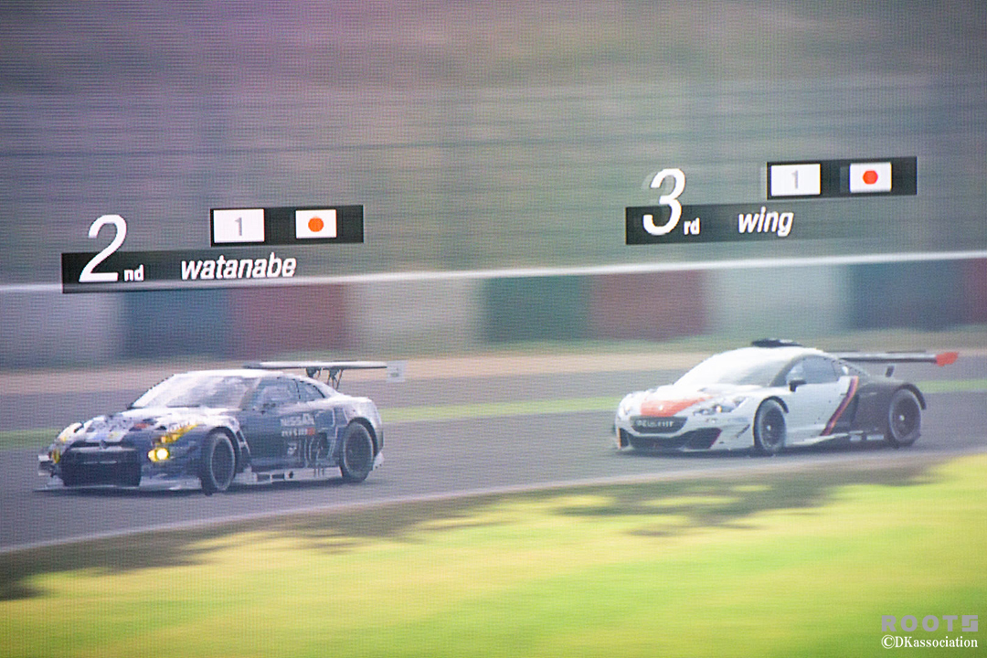 wing選手も必死に食らいつきプレッシャーを与え続けますが僅差でwatanabe選手のGT-Rが2位チェッカーとなりました。