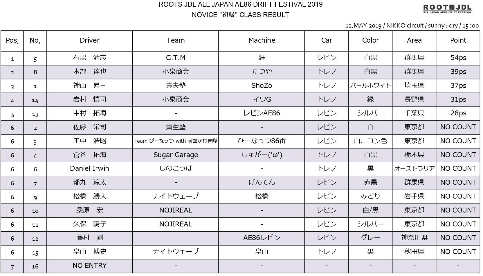 05.11,12 ROOTS JDL (AE86) 日光サーキット